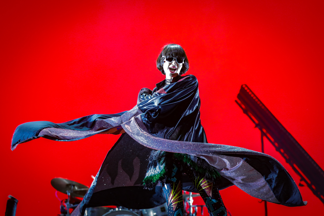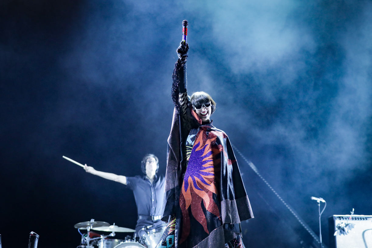 Throughout the show, the band’s chemistry was evident, and their passion for the music they created was contagious. They embraced the wildness of their sound, and the audience responded in kind, dancing and jumping with boundless enthusiasm. With giant bouncy eyeballs being passed over the crowd, confetti cannons showering the venue amongst the incredible array of colours that constantly lit up the stage, it was a visual feast from beginning to end. Karen O also didn’t disappoint with her eclectic and oh-so rock-chic outfits. First in a shiny, red and endlessly layered dress which later came off to reveal beneath it a black bodysuit with golden tassels all over.